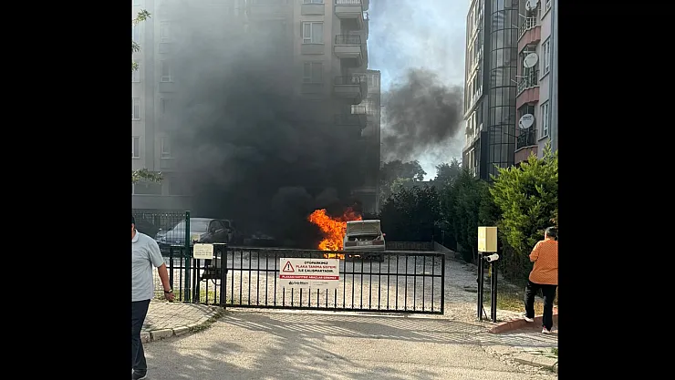 Karaman Mahallesi’nde bugün saat 16.30 sıralarında meydana gelen olayda, apartmanların ortak otoparkında park halinde olan bir araç alev aldı.