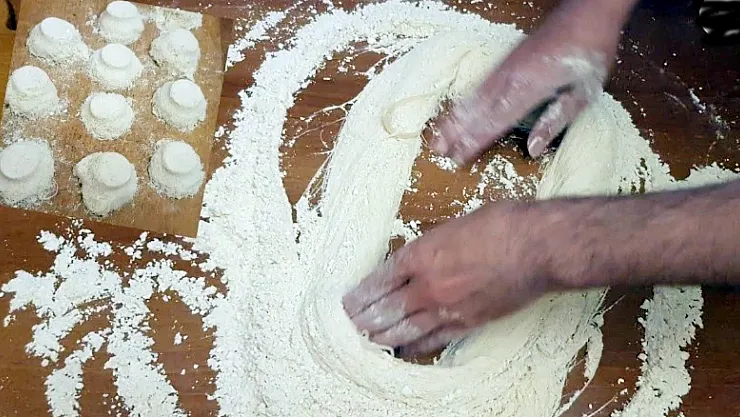 Kenarlarından çekip katlayarak unu macuna tamamen yedirin. Pişmaniyeniz hazır…