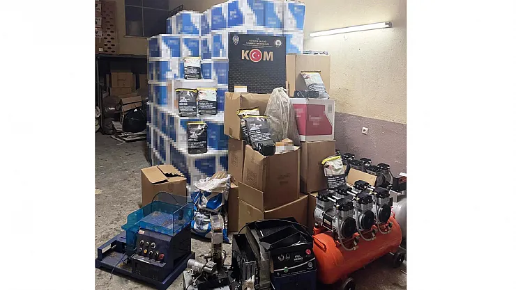 Kütahya KOM Şube Müdürlüğü ekiplerince kaçakçılık suçunun önlenmesine yönelik olarak yapılan çalışmalar çerçevesinde Kütahya il merkezinde 1 ikamet, Gediz ilçesinde 2 ikamet, 1 işyeri ve 1 araçta eş zamanlı olarak yapılan arama sonucunda, 1 milyon 634 bin 520 adet dolu ve boş makaron,133 kilogram kıyılmış tütün, 3 adet elektronik makaron doldurma makinası, 1 adet hava kompresörü,1 adet tabanca ve 2 fişek ele geçirildi.