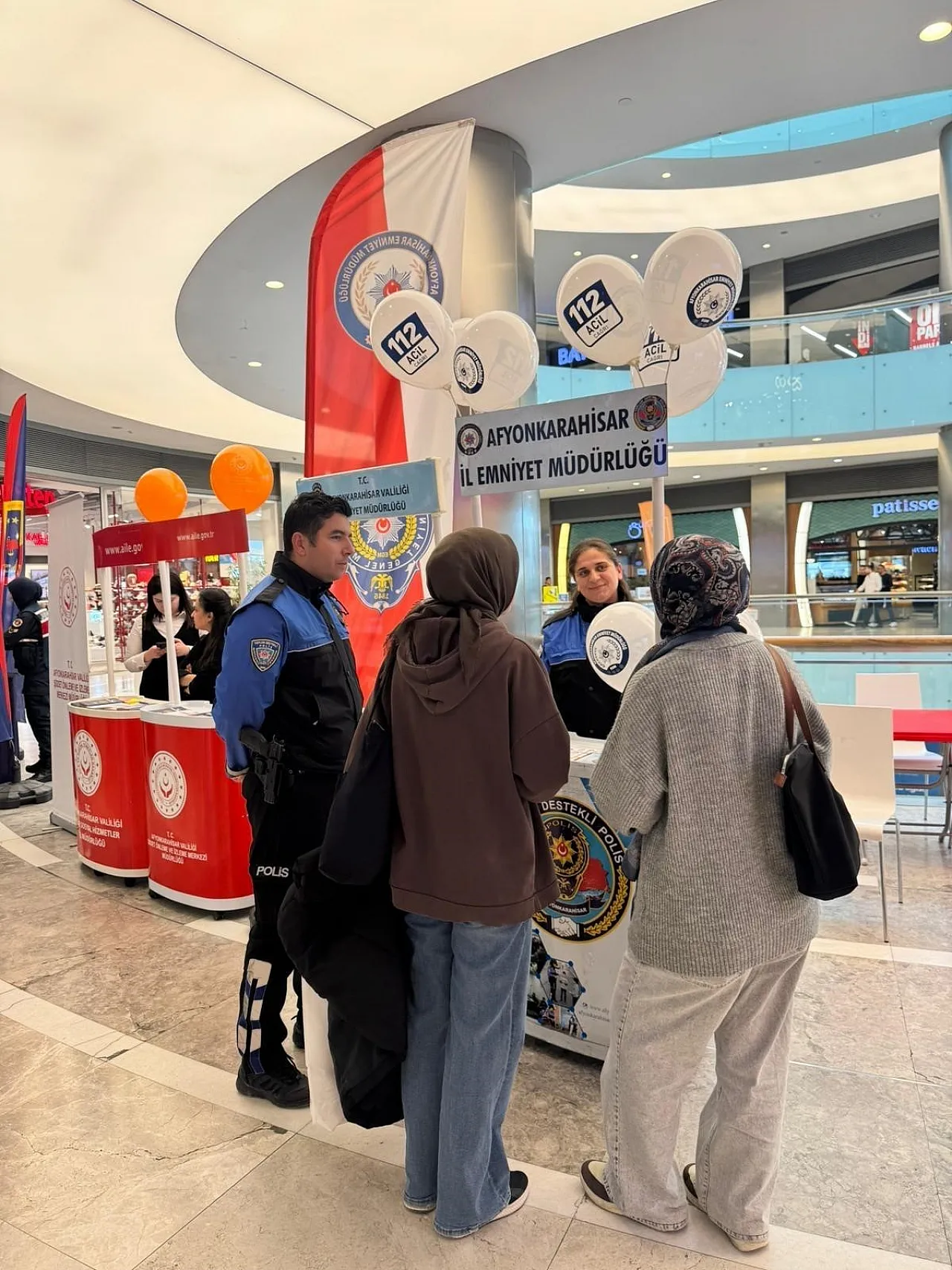 Afyonkarahisar'da polis ekipleri Park Afyon AVM'de açtıkları stant ile vatandaşlara kadına yönelik siddet ile mücadele konusunda bilgilendirme yapıldı.