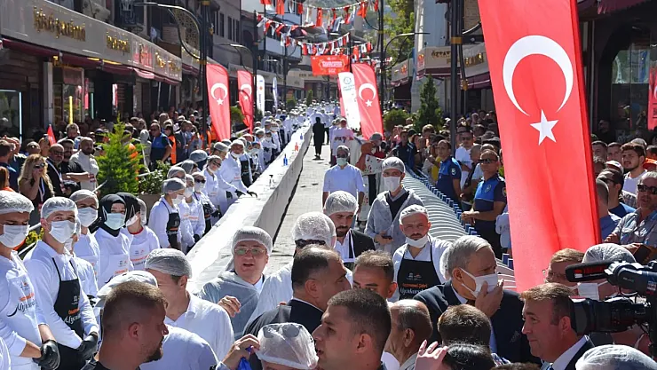 Afyonkarahisar, bugün tarihi dakikalara ev sahipliği yaptı. Dünyanın en uzun lokumu Afyonkarahisar'da, Uzun Çarşı'da yapıldı