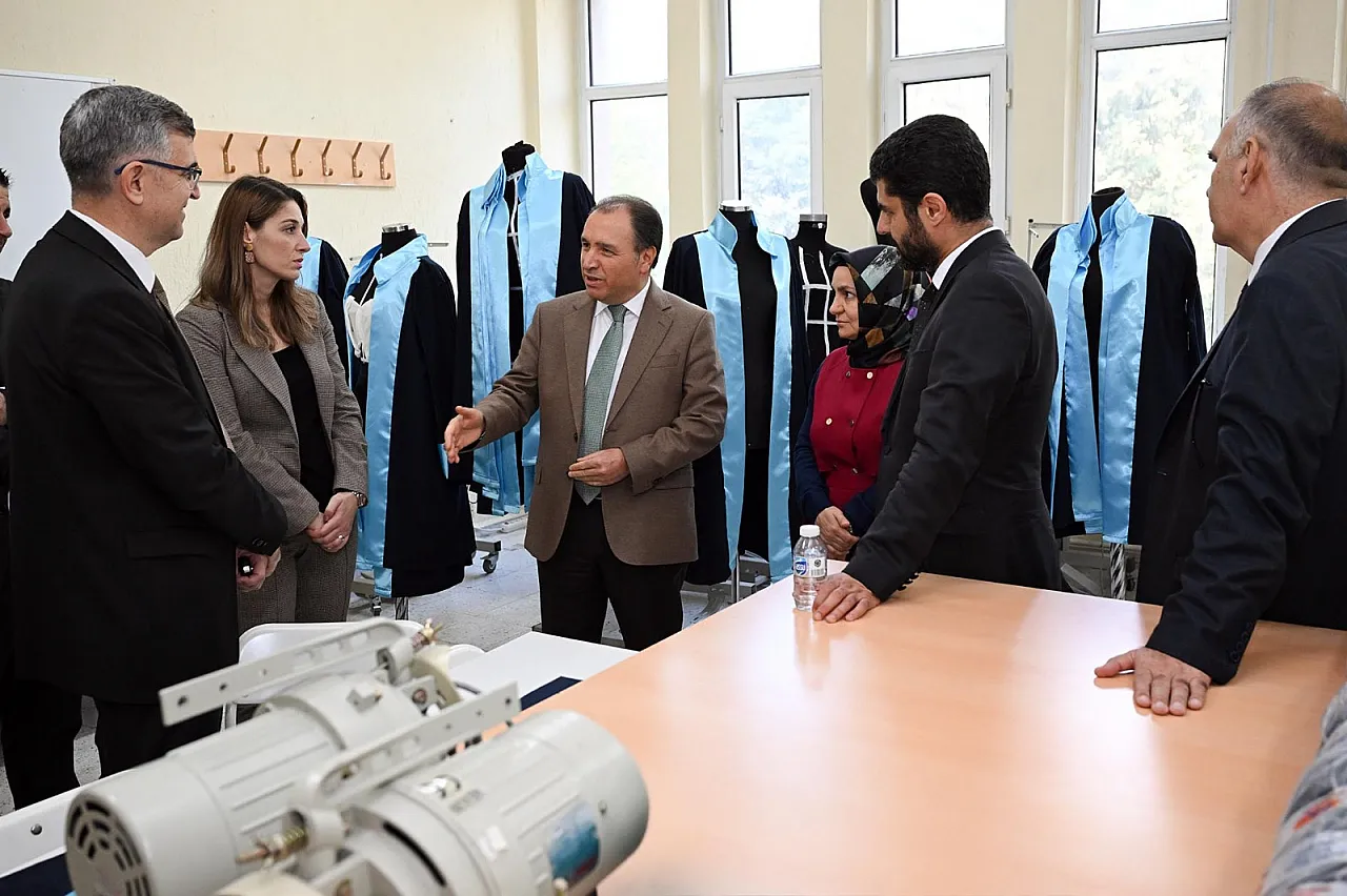 Rektör Karakaş ve beraberindeki heyet, Dinar UBYO ve Dinar MYO ziyaretlerinde Moda Tasarım ve Üretim Atölyesi, Desen-Tasarım Laboratuvarı, Bilgisayar Laboratuvarı ile Endüstriyel Tasarım Bölümü Laboratuvarını yerinde inceledi ve Dinar UBYO Müdürü Doç. Dr. Serkan Göksu ile Dinar MYO Müdürü Doç. Dr. İsmail Ciğerci’den bilgiler aldı.