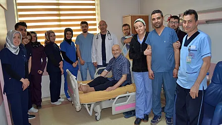 Afyonkarahisar Devlet Hastanesi Kalp Damar Cerrahisi Servisi’nde Op. Dr. Evren Tecer ve ekibinin başarılı operasyonu sonucu hasta A.İ. operasyonun 7. gününde iyileşerek taburcu edildi.