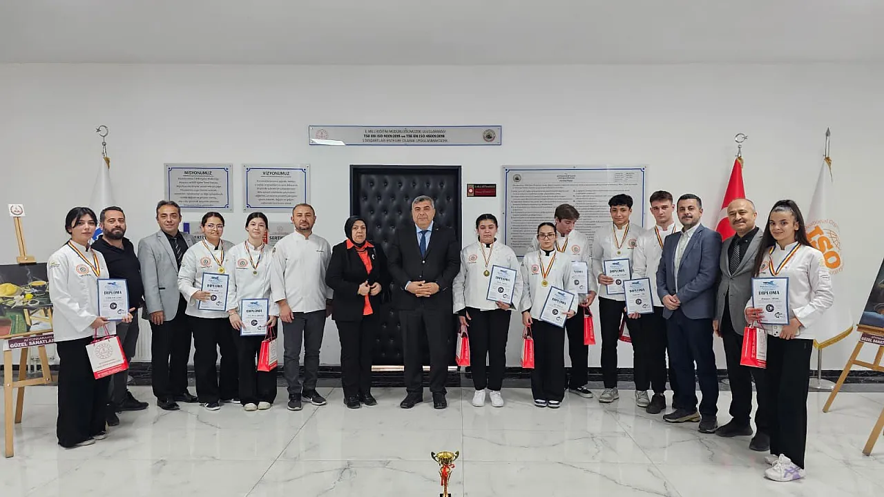 Müdür Sünnetci, “Son yıllarda hem akademik hem de uygulamalı alanlarda önemli başarılar elde eden meslek liselerimiz göğsümüzü kabartıyor. Sizlerin uluslararası platformlarda bayrağımızı gururla dalgalandırdığını görmek bizlerinde mutluluk sebebi. Almış olduğunuz eğitimin sahadaki karşılığının en güzel örneklerinden biri olan bu madalyalar için hepinizi yürekten kutluyorum. Sizlere gönülden emek veren tüm öğretmen ve idarecilerinizi de tebrik ediyorum” dedi.
