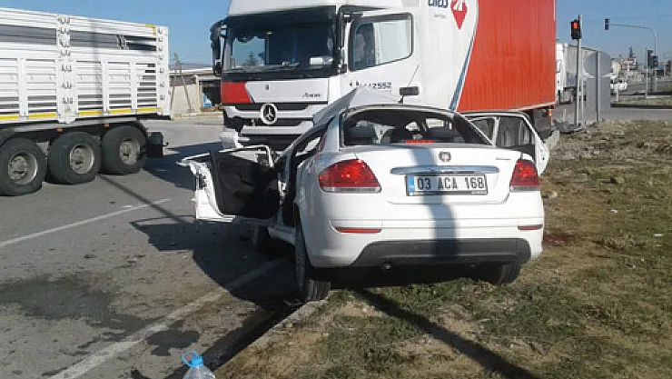 S.T. (44) idaresindeki 42 FMV 70 plakalı kamyon, ilçe merkezindeki Çobanlar Kavşağı’nda, Cengiz Işık (24) yönetimindeki 03 ACA 168 plakalı otomobille çarpıştı. Kazada, otomobilde sıkışan sürücü ile babası Bünyamin Işık (48) ağır yaralandı.