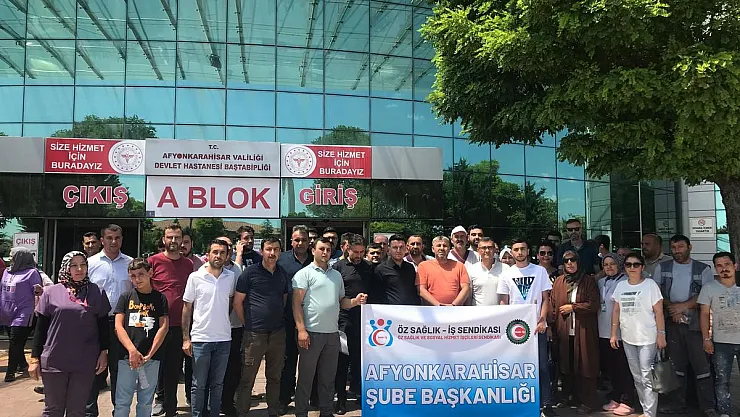 Öz Sağlık İş Sendikası Afyonkarahisar Şube Başkanı İbrahim Gürbüz, sendika üyeleriyle birlikte Afyonkarahisar Devlet Hastanesi A Blok önünde basın açıklaması yaptı.