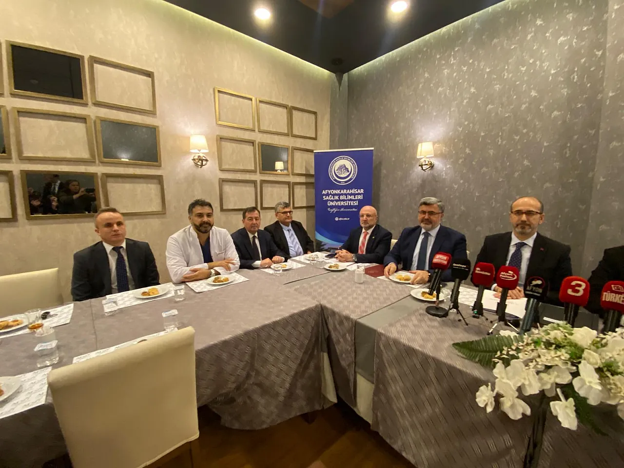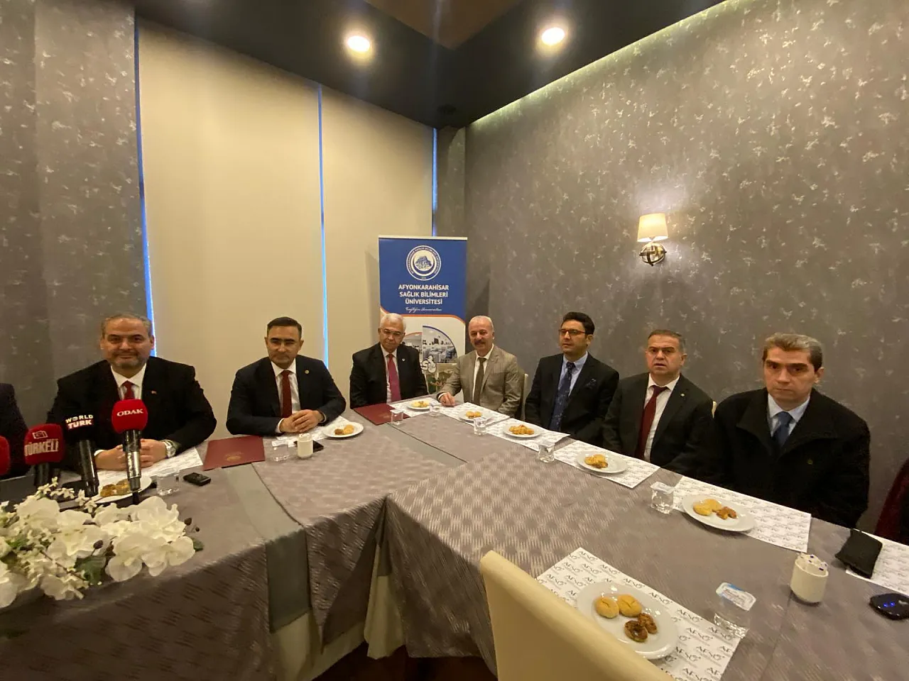 AFSÜ Rektörü Prof. Dr. Adem Aslan’ın ev sahipliğindeki toplantıya; AK Parti Afyonkarahisar Milletvekilleri Av. Ali Özkaya, Dr. Hasan Arslan, AK Parti Afyonkarahisar İl Başkanı Av. Turgay Şahin, Afyonkarahisar İl Sağlık Müdürü Dr. Hakkı Öztürk, AFSÜ Rektör Yardımcıları Prof. Dr. Ümit Dündar, Prof. Dr. İbrahim Keleş, Prof. Dr. Ahmet Ali Tuncer, AFSÜ Sağlık Uygulama ve Araştırma Merkezi Başhekimi Doç. Dr. Aydın Balcı, AFSÜ Ağız ve Diş Sağlığı Uygulama ve Araştırma Merkezi (ADSUAM) Başhekimi, AFSÜ Diş Hekimliği Fakültesi (DHF) Dekan Yardımcısı Doç. Dr. Ömer Ekici, Afyonkarahisar İl Sağlık Müdürlüğü Kamu Hastaneleri Hizmetleri Başkanı Mehmet Duran, Sinanpaşa Devlet Hastanesi Başhekimi Dr. İbrahim Karadağ katıldı.