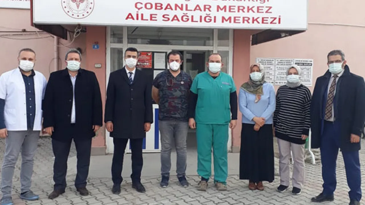 Çobanlar İlçe Hastanesi ve Aile Sağlığı Merkezi’ni (ASM) ziyaret eden Sağlık Müdürü Korkmaz hastanenin farklı birimlerinde ve ASM’de incelemelerde bulunarak salgın süreci ve aşılama çalışmaları konusunda personelden ve yetkililerden bilgi aldı. Korkmaz’a ziyareti sırasında Halk sağlığı hizmetleri Başkanı Dr. Şükrü Boz ve Destek Hizmetleri Başkanı Asım Eren eşlik etti.