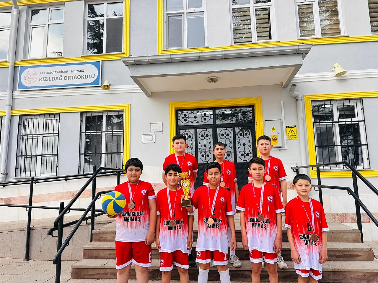 Beden eğitimi öğretmeni Samet Akın rehberliğinde turnuvaya hazırlanan takım, müsabakalar boyunca sergilediği mücadele, disiplinli oyun anlayışı ve takım ruhuyla dikkat çekti. Zorlu rakipler karşısında ortaya koydukları performansla okullarını en iyi şekilde temsil eden Kızıldağ Ortaokulu Küçük Erkekler Voleybol Takımı öğrencileri, önemli bir dereceyle turnuvayı tamamladı.