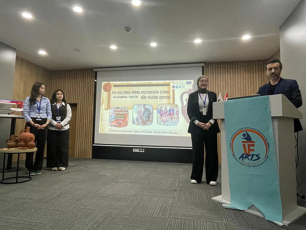 Gerçekleştirilen birinci oturum, Prof. Dr. Münevver Üçer ve Doç. Dr. Birnaz Er Cengiz başkanlığında yapıldı. Oturumda Prof. Dr. Münevver Üçer “Bursa Yeşil Camii’nde Taşa Nakşedilme”, Prof. Dr. Mehmet Ali Eroğlu “Türk Kültüründen İzler (Türkler-Kızılderililer)”, Doç. Dr. Birnaz Er Cengiz “Geleneksel Dokumalarda Vektörel Tabanlı Desen ve Kompozisyon Çözümlemesi: Ali Kılınç Koleksiyonu Taşpınar Halıları Örneği” ve R. Gülenay Yalçınkaya “Şanlıurfa’da Bir Keçe Ustası: Kadir Karcı” başlıklı bildirilerini sundu.
