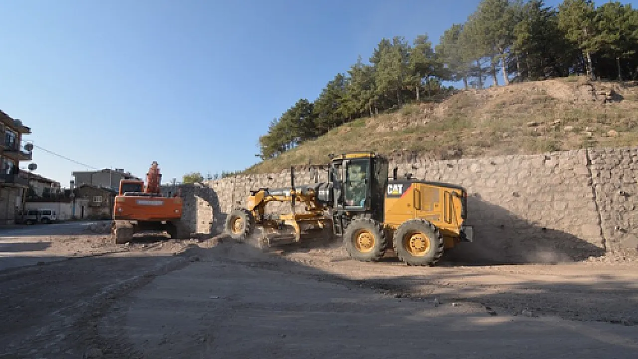 Sit alanı olan Hisar Kalesi alanında gerekli sit izinleri alınarak yapımına başlanan istinat duvarının, çevre uzunluğunun 340 metre, duvar yüksekliğinin 1,5 metre ile 4 metre arasında değişen oranlarda yapımının sürdüğünü kaydetti.