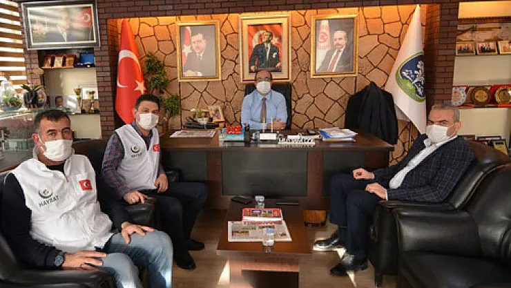 Hayrat İnsani Yardım Derneği Sandıklı Temsilcisi Süleyman Güntaş ile Dernek Yöneticisi Ahmet Erşahin, Sandıklı Belediye Başkanı Mustafa Çöl’ü makamında ziyaret ettiler.