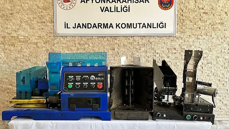 Afyonkarahisar İl Jandarma Komutanlığı ekipleri kaçak makaron dolumu yapan makinelerini satmaya çalışan iki kişiyi yakaladı.