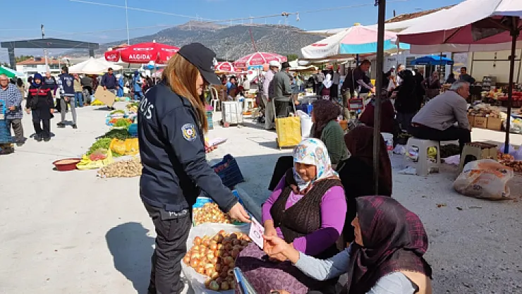 Dinar ilçe pazarında pazara gelen vatandaşlar ve pazarcılara farkındalık yaratmak için broşür dağıtıldı. Farkındalık çalışması çerçevesinde güvenlik güçleri tarafından kadına yönelik şiddet ve aile içi şiddet için KADES’i tanıtan broşürler dağıtıldı. Kadına yönelik şiddet ve aile içi şiddet hakkında bilgi verildikten sonra telefon dolandırıcılığı, yankesicilik, sahte para ve hırsızlık konularına karşı da uyarı ve bilgilendirme yapıldı.