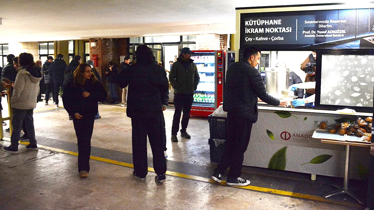 Anadolu Üniversitesi Kütüphanesi, 7/24 açık yapısıyla öğrencilere konforlu ve güvenli bir ders çalışma ortamı sunuyor. Sessiz ve teknolojik donanıma sahip çalışma alanları, zengin kaynak çeşitliliği ve rahat atmosferiyle öğrencilerin sınav dönemlerinde verimli zaman geçirmelerine imkân tanıyor. Bu uygulamayla öğrenciler, hem ihtiyaç duydukları akademik kaynaklara günün her saatinde ulaşabiliyor hem de yoğun sınav temposunda sıcak bir mola verme fırsatı buluyor.