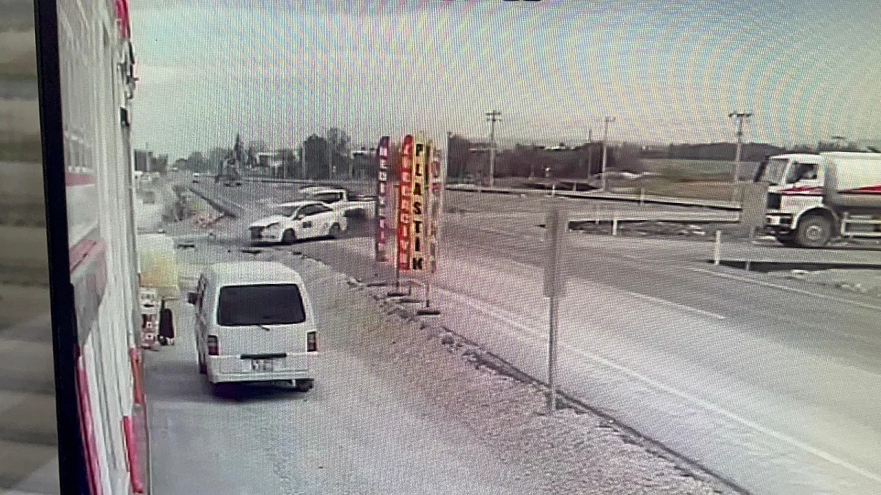 Eskişehir'de caddeden ara sokağa dönmek için hamle yapan otomobile, karşı yönden gelen arazi aracının çarpması sonucu meydana gelen trafik kazası güvenlik kamerasına anbean yansıdı.