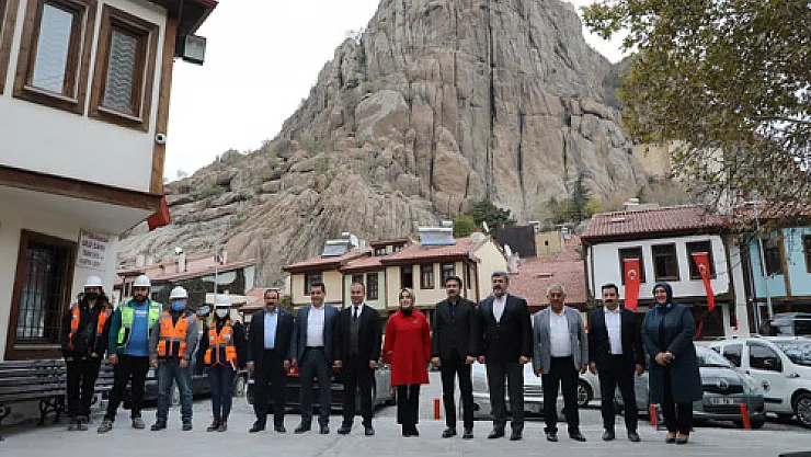 Belediye Başkanı Mehmet Zeybek, AK Parti Afyonkarahisar İl Başkanlığı tarafından düzenlenen 88. İl Danışma Toplantısına katılmak için kente gelen AK Parti Grup Başkanvekili Av. Cahit Özkan ve AK Parti Trabzon Milletvekili Bahar Ayvazoğlu ile beraberindeki heyeti, restorasyon çalışmalarının devam ettiği tarihi konakları ve belediye tarafından yeniden halkın hizmetine açılan ‘Millet Hamamını’ gezdirdi. Grup Başkanvekili Özkan, AK Parti Trabzon Milletvekili Ayvazoğlu, AK Parti Milletvekili Av. Ali Özkaya, AK Parti İl Başkanı Hüseyin Ceylan Uluçay ve beraberindekiler ilk olarak sokak sağlıklaştırma çalışmalarının yapıldığı Ulu cami etrafındaki tarihi konakları ziyaret etti. Yapılan çalışmalar hakkında Özkan ve Ayvazoğlu’na bilgiler veren Zeybek , bölgenin tarihi ve kültürel zenginliklerinden bahsetti.