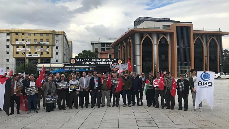 Anadolu Gençlik Derneği (AGD) Afyonkarahisar Şube Başkanı Muharrem Coşkun, İsrail’in saldırılarıyla kan gölüne dönen Refah’ta ki terör saldırılarını telin etmek amacıyla Zafer Meydanı’nda toplandıklarını söyledi. İsrail’in Filistin halkına karşı uyguladığı soykırım ve terör saldırılarına Anadolu Gençlik Derneği üyelerinin yanı sıra Milli Görüş teşkilatları da destek verdiler.
