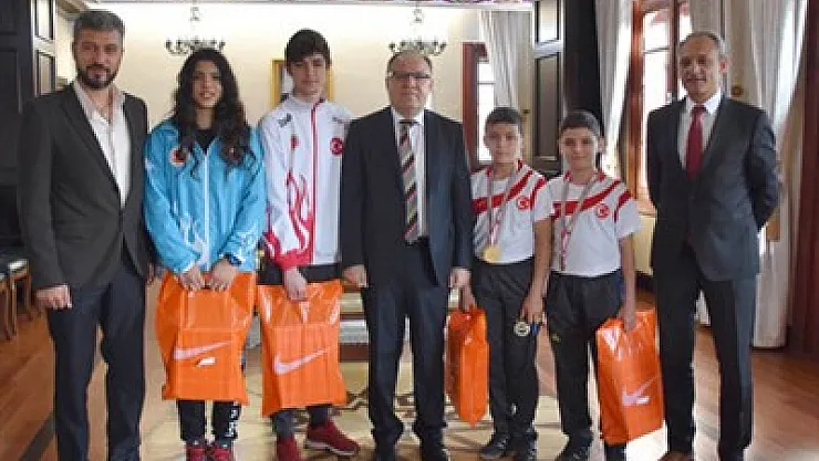 Muay Thai ve Kick Boks’ta şampiyon olarak dereceyle giren Kazım Köken, Kübra Kocakuş, Sadettin Sıkı, Serhat Sıkı ile Kick Boks İl Temsilcisi Muay Thai Milli Takım Antrenörü ve Teknik Direktör Serdar Şanlı’yı makamında kabul etti.