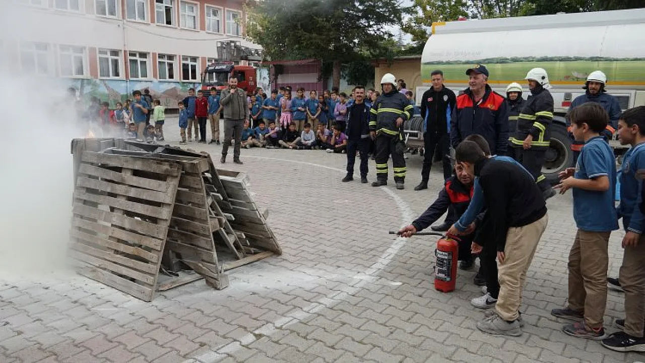Öğrencilerin heyecan ve merakla takip ettiği tatbikatta yangında üst katta mahsur kalan bir vatandaşın pencereden kurtarılması ve çıkan yangının itfaiye ekipleri tarafından başarıyla söndürülmesi canlandırıldı. Etkinlik boyunca öğrencilere yangın anında yapılması gerekenler, panik yapmadan nasıl hareket edilmesi gerektiği ve itfaiye ekiplerinin görevleri uygulamalı olarak gösterildi. Öğrencilerin dikkatle izlediği tatbikat hem eğitici hem de farkındalık oluşturan yönüyle büyük beğeni toplarken, yine öğrenciler itfaiye personelleri kontrolünde yangın söndürme tüpüyle ateşi söndürme çalışması yaptılar.