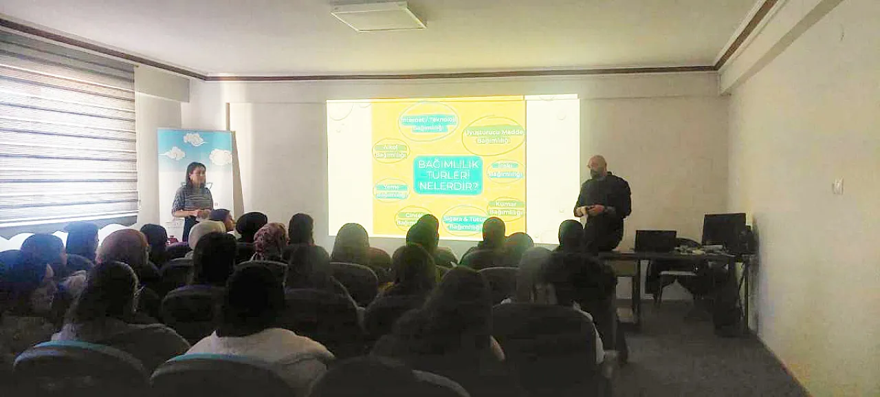 Öğretim Görevlisi Alperay Girişbay’ın konu hakkında bilgilendirici sunumuyla başlayan etkinlik, moderatör Kurtoğlu’nun katkısıyla etkileşimli bir şekilde devam etti. Bağımlılık türleri ve bağımlılıkla mücadelede bireysel ve toplumsal farkındalığın öneminin ele alındığı etkinlik, soru-cevap bölümüyle sona erdi.