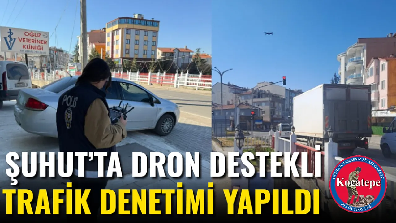 Afyonkarahisar Şuhut İlçe Emniyet Müdürlüğü ekipleri tarafından ilçe merkezinde dron destekli trafik denetimi gerçekleştirildi.