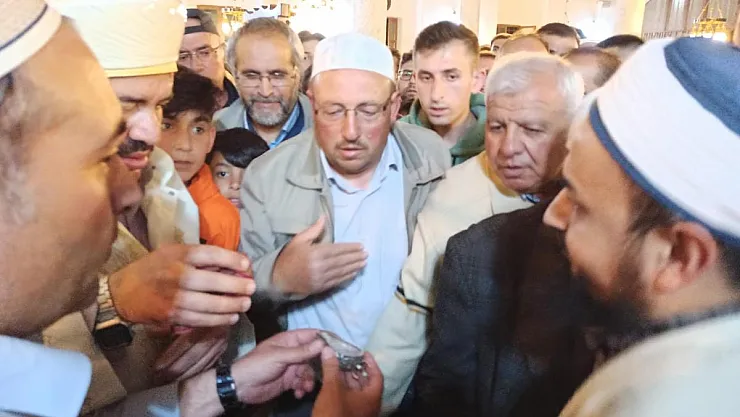 Afyonkarahisar’ın Şuhut ilçesinde Kadir Gecesi sebebiyle ziyarete açılan sakal-ı şerifi görmek isteyen cemaat adeta bir birleri ile yarıştı.