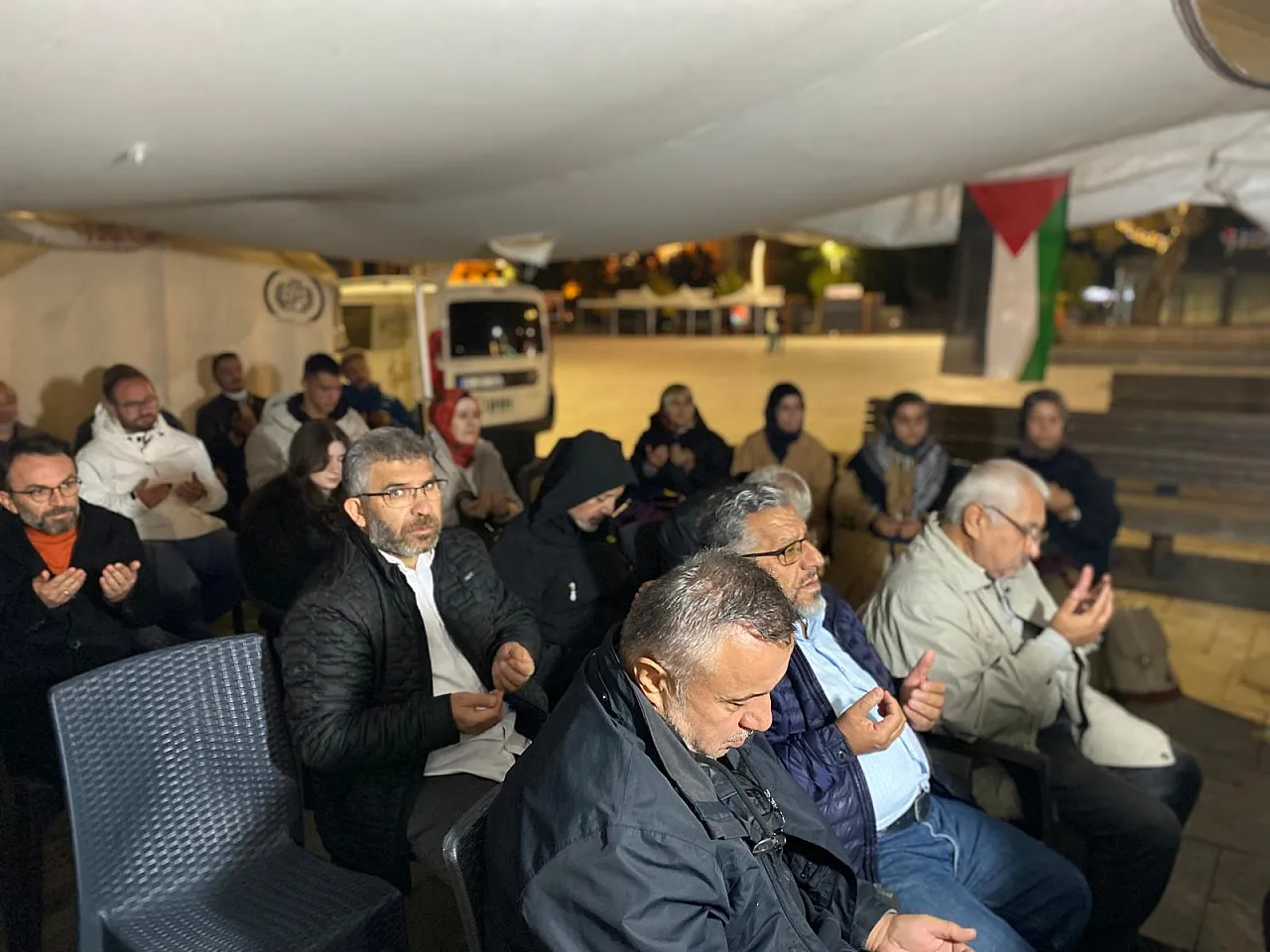 Afyonkarahisar Milli İrade Platformunun Zafer Meydanında 3-10 Ekim 2025 tarihleri arasında “Dualarımız ve Tüm Kalbimizle Gazze İçin Nöbetteyiz” etkinlik takviminin son programı 10 Ekim 2025 Cuma akşamı yatsı namazından sonra AKÜ SKS Daire Başkanı Gürbüz Bıdık’ın, “Vicdanın Yükünü Taşıyan Gemiler: SUMUD Filosu” başlıklı sunumu ile tamamlandı. Etkinlik sonunda toplu dua gerçekleştirildi.