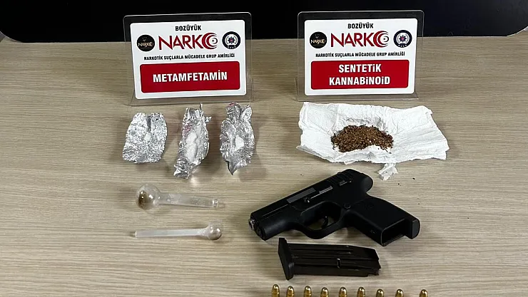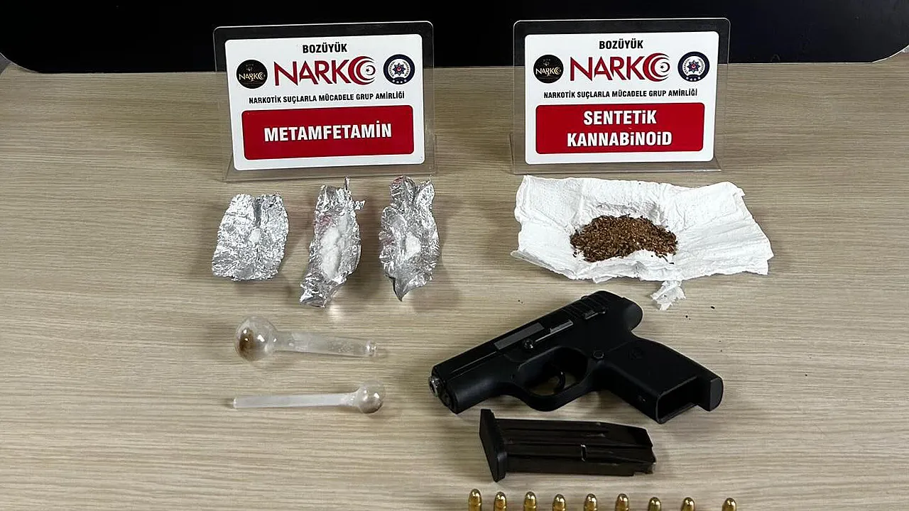 Edinilen bilgilere göre, Bilecik İl Emniyet Müdürlüğüne bağlı Bozüyük Narkotik Büro Amirliği ekiplerince yürütülen çalışmalar kapsamında bir şüpheli şahsa yönelik operasyon düzenlendi. Yapılan aramalarda muhtelif miktarlarda metamfetamin ve sentetik kannabinoid (bonzai) maddesi ele geçirildi. Operasyonda ayrıca 1 adet kurusıkıdan bozma tabanca ve fişeği ile 2 adet cam aparat (bong) bulundu. Ele geçirilen malzemelere el konulurken, 1 şüpheli şahıs yakalandı.