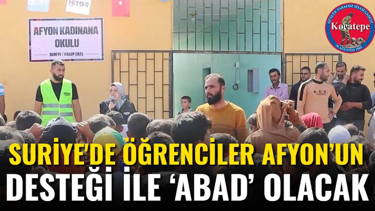 Afyonkarahisar İl Milli Eğitim Müdürlüğü eş güdümünde Fetih İnsani Yardım Vakfı iş birliğinde Suriye'nin Halep kırsalı Abad bölgesinde açılan Afyon Kadınana Okulu eğitim faaliyetlerine başladı.