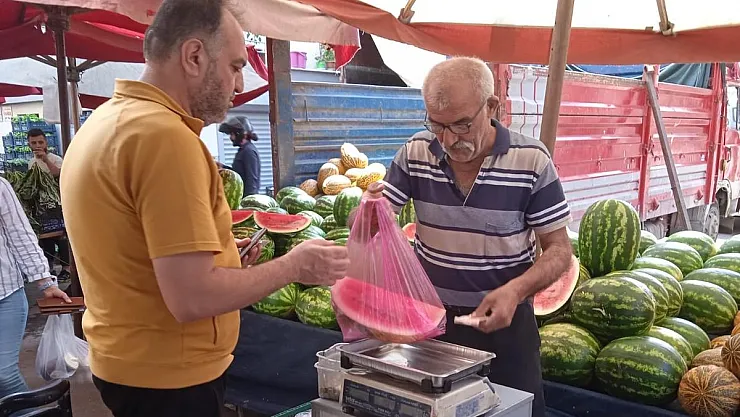 Yaz aylarında vatandaşlar tarafından çok tercih edilen meyvelerin başında karpuz geliyor. Havaların ısınmasıyla birlikte semt pazarlarının tezgâhlarında karpuz sezonu açılırken, son dönemde yarım ve çeyrek karpuzlar satılıyor. Tarladan aldıkları karpuzları pazar tezgâhlarına çıkaran esnaf, vatandaşların bazılarının bütün karpuz yerine yarım ve çeyrek karpuz satın aldıklarını belirtiyor. Bütün karpuz satamamaktan dolayı işlerinin yavaş ilerlediğini dile getiren karpuzcu esnafı, karpuzun ağırlığına göre fiyatların değişkenlik gösterdiğini ifade ediyor.