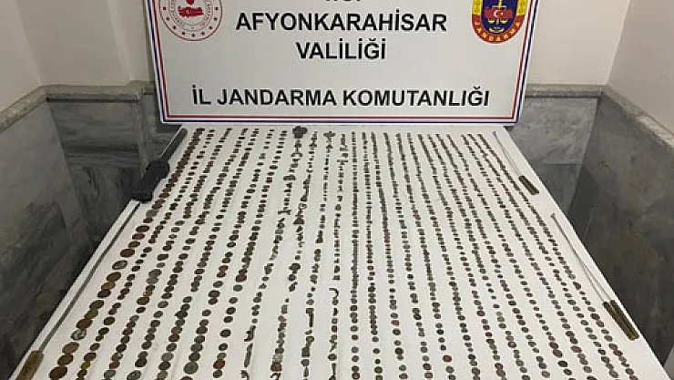 Afyonkarahisar İl Jandarma Komutanlığı ekipleri tarafından şüphe üzerine durdurulan otomobilde çok sayıda tarihi eser ele geçirildi