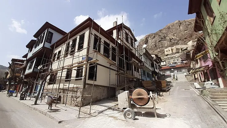 Afyonkarahisar kent merkezinde restorasyon çalışmalarına hava şartları nedeniyle ara verilen tarihi konaklarda çalışmalar tüm hızıyla sürüyor.