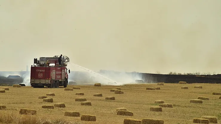 Eskişehir'de saman balyalarının olduğu tarlaya sıçrayan anız yangını, itfaiye ekiplerinin çalışmaları sonucunda söndürüldü.
