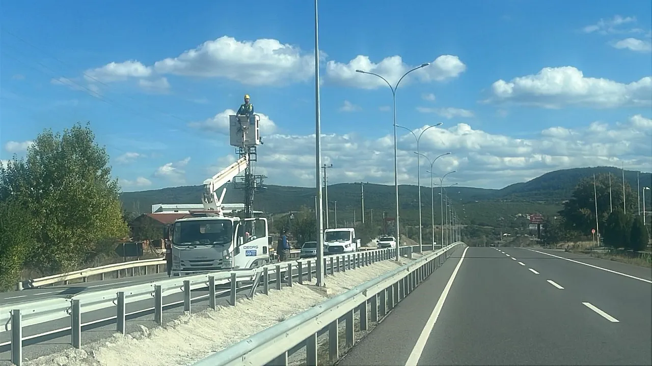 Kütahya'nın Tavşanlı ilçesinde, sürücülerin ve yolcuların güvenli bir şekilde seyahat etmesi amacıyla çevre yolu aydınlatma direklerinin bakım ve onarım çalışmaları hız kesmeden devam ediyor.