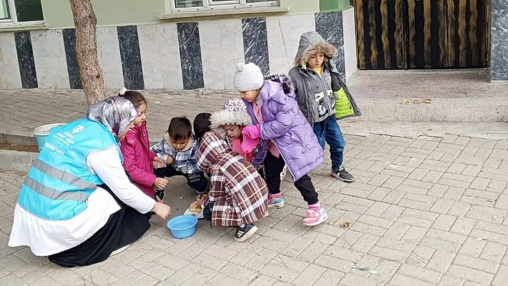 Türkiye Diyanet Vakfı (TDV) Afyonkarahisar Şubesi Kadın Kolları Gönüllüleri ile Kuran Kursları ve 4-6 yaş kurs öğrencileri soğuk geçen hava şartları nedeniyle, yiyecek bulmakta zorlanan hayvanlar için, her gün su ve yiyecek bırakıyorlar.