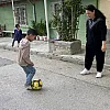 Futbolcu olmayı hayal eden Hamit, evinin önünde antrenmanlara başladı