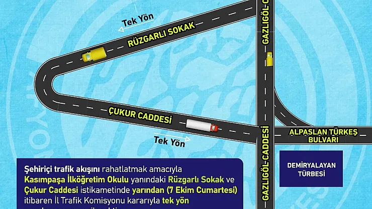 Vilayet Kavşağından, Basın Caddesine giriş ve Kasımpaşa İlköğretim Okulu yanındaki Rüzgârlı Sokak ile Çukur Caddesi istikametinde tek yön uygulaması başlıyor.