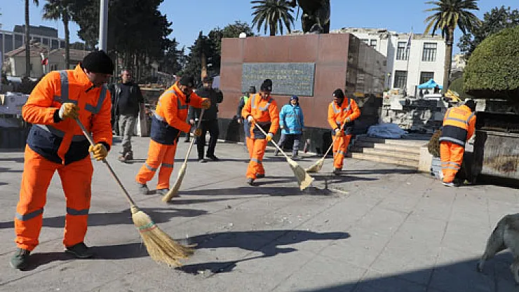 Temizlik ekipleri deprem bölgesinde