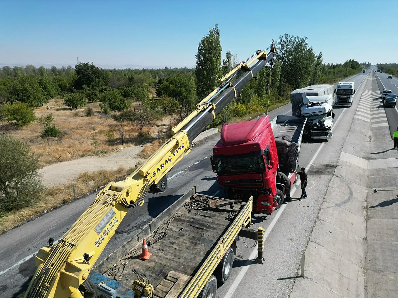 Tır ardından önünde seyreden M.G.’nın kullandığı 06 … 837 plakalı tıra arkadan çarptı. Kazada sürücülerden C.K. ile E.E., yaralandı. Yaralılar kaza sonrası çevredekilerin haber vermesi üzerine olay yerine gelen ambulanslarla hastanelere kaldırıldı.