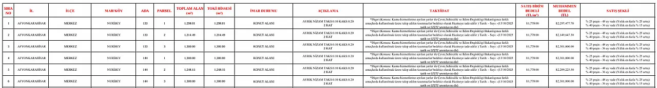 TOKİ 37 İlde 252 Arsa Satacak! 48 ay vade. Afyon da Var