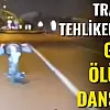 Gencin adeta ölüme davetiye çıkardığı manzarayı görenler ise cep telefonlarına sarılarak o anları kayıt altına aldı.
