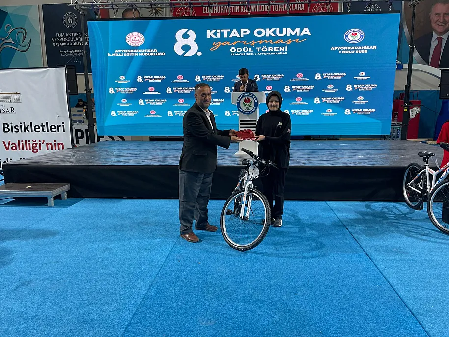 Bu kapsamda Bu yıl yaklaşık 9 bin kitap öğrencilerimize ulaştırıldı. Afyonkarahisar Valiliğimizin öncülüğü ve destekleriyle yüksek katılımla gerçekleştirilen kitap okuma yarışmasında gösterdikleri gayret ve başarıyla ödüle layık görülen öğrencilerimize bugün 120 bisiklet, bilgisayar ve tablet gibi değerli hediyeler takdim ediyoruz.