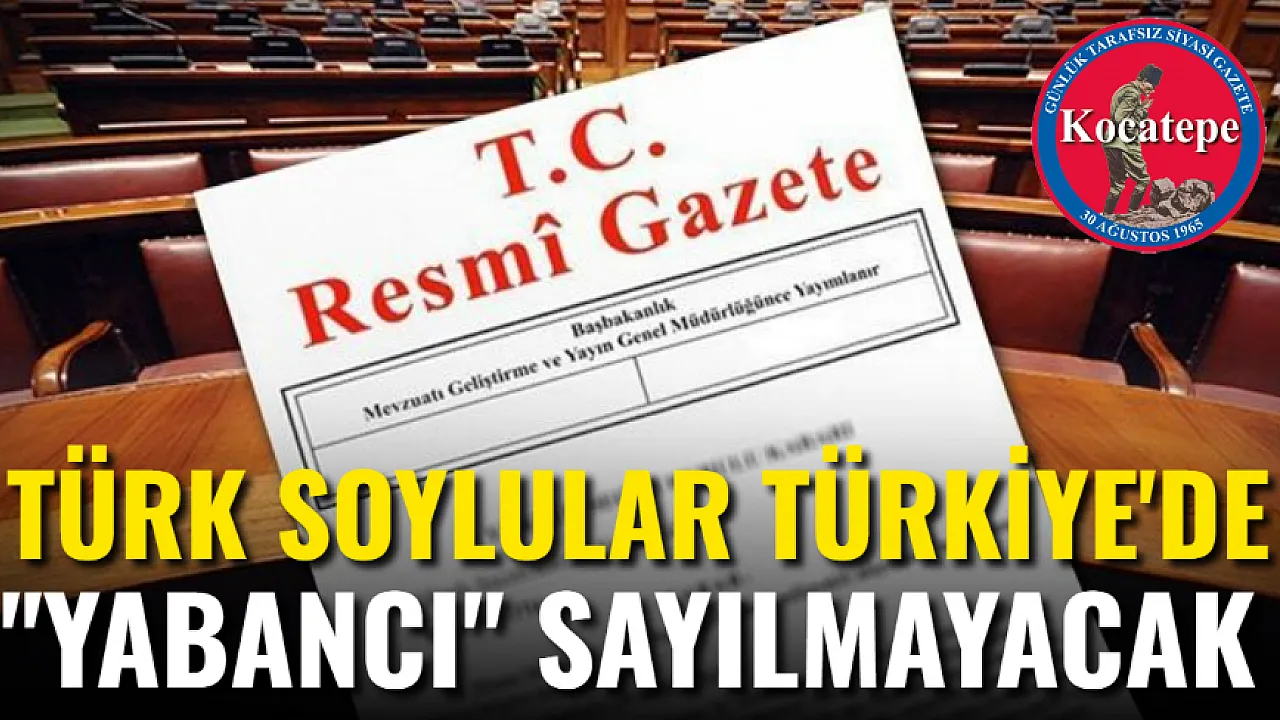 Yeni Cumhurbaşkanı kararnamesiyle Türk soylular artık Türkiye'de 'yabancı' sayılmayacak. Azerbaycan'dan, Türkistan'dan ve diğer Türk topluluklarından gelen kişiler, mesleklerini serbest icra edip kamu ve özel sektörde çalışabilecek.