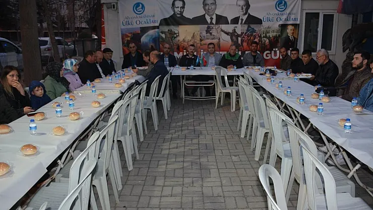 Her yıl geleneksel hala gelen iftar buluşmalarında Afyonkarahisar Ülkü Ocakları, basın mensupları ile bir araya geldi. İftar yemeğinde, konuşan Diler, “Başı rahmet, ortası mağfiret, sonu cehennem azabından kurtuluş olan Ramazan ayına bizleri kavuşturan Cenab-ı Hak’a şükrediyorum. Ülkü Ocakları olarak, özellikle üniversite, lise ve ortaokul düzeyi olmak üzere bilinçli bir genç nesil yetiştirmek için üzerimize düşen görevi yapıyoruz. Özellikle akademik anlamda önemli projeler üzerinde bir birinden değerli isimlerle gençlerimizi bir araya getiriyoruz. Ülkücü camia olarak bundan önce olduğu gibi bundan sonra da hep birlikte Türkiye Cumhuriyeti’nin bekası için çalışmaya devam edeceğiz. Allah birlik ve beraberliğimizi bozmasın” dedi. (İHA)