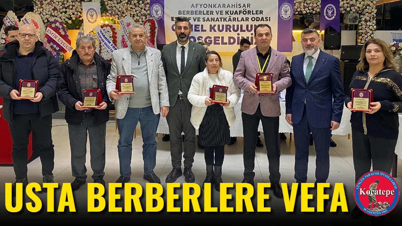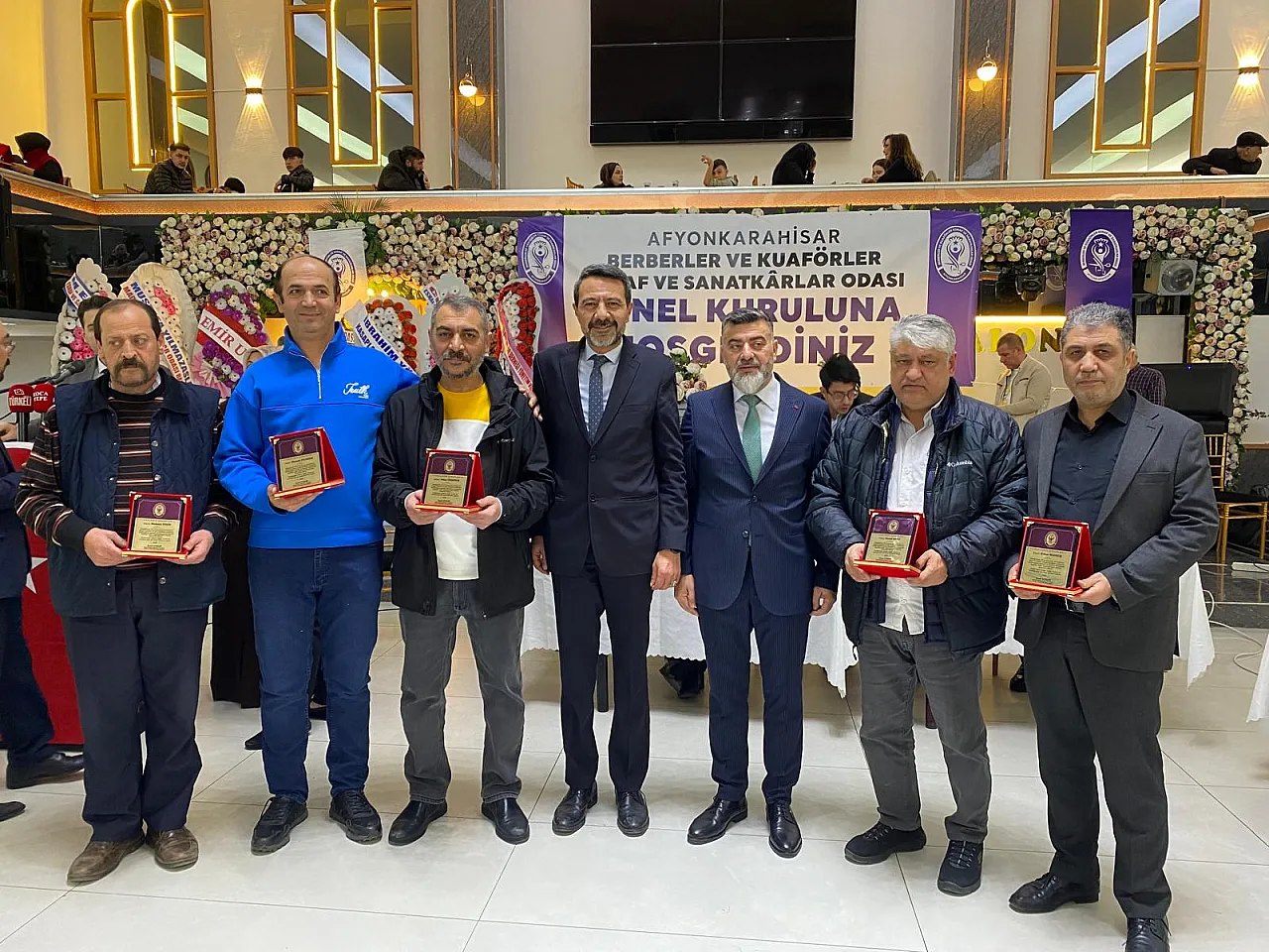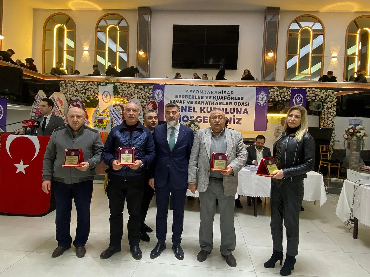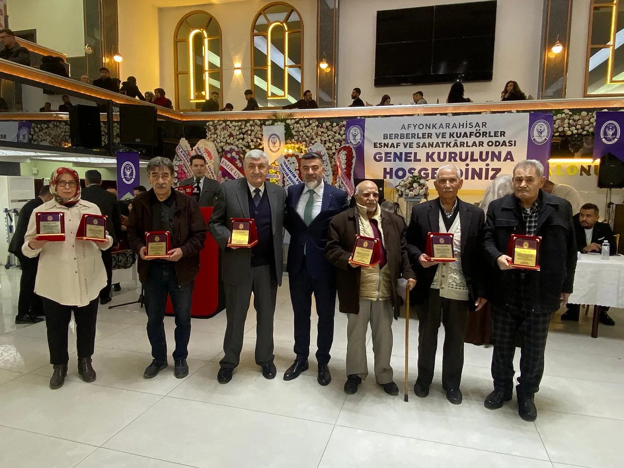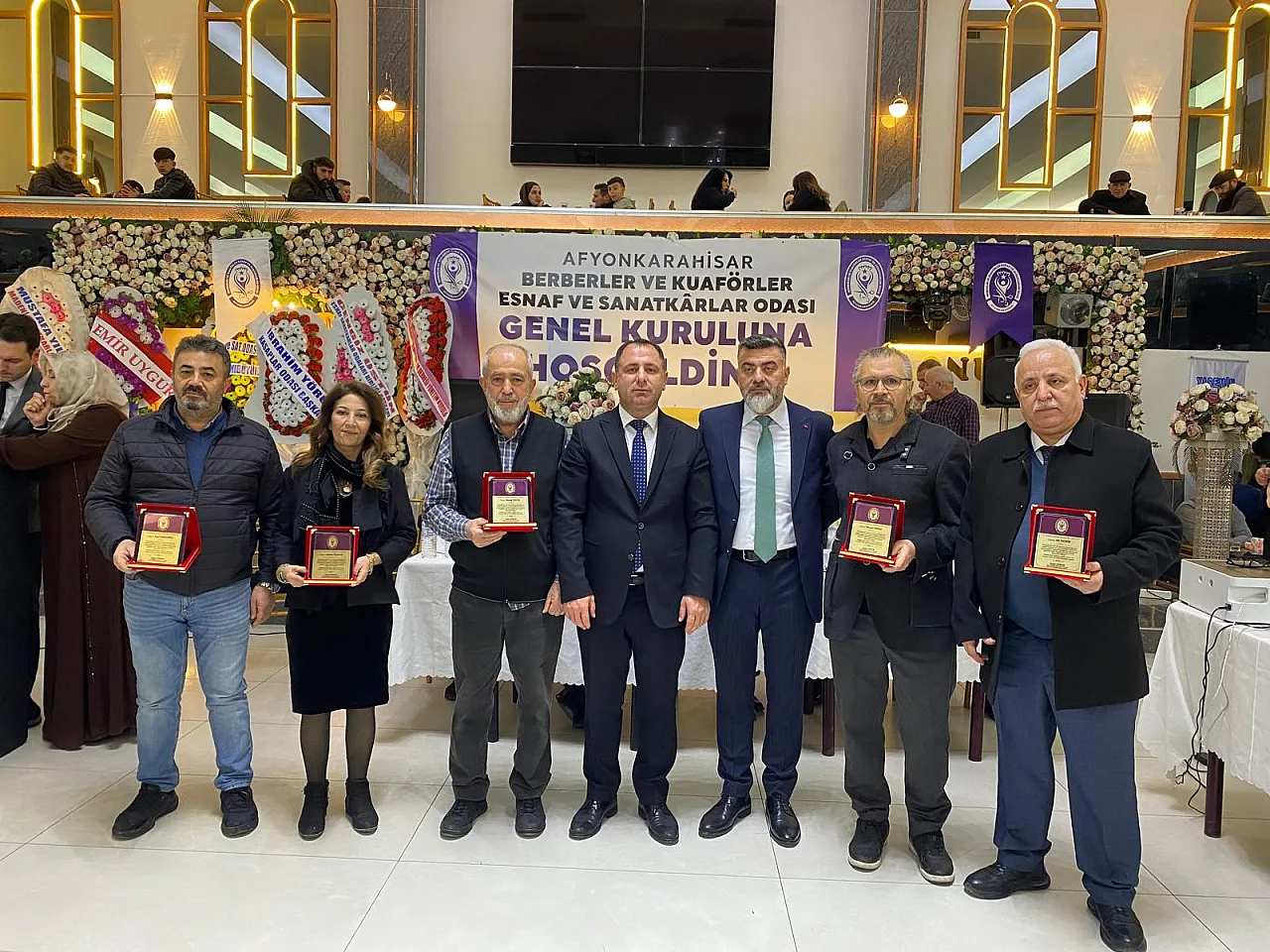 Afyonkarahisar Berberler ve Kuaförler Esnaf ve Sanatkârlar Odasının 2026 yılı olağan genel kurul toplantısında meslek büyüklerine platek takdimi yapıldı.