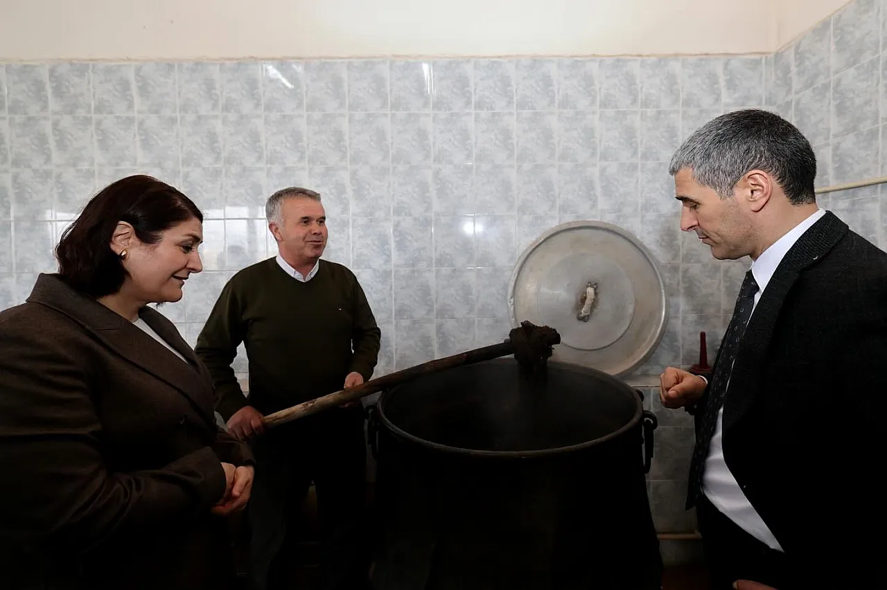Afyonkarahisar Valisi Dr. Naci Aktaş, Bayat İlçesinde tescilli Bayat kilimlerinin dokunduğu Bayat Kilim Atölyesi'nde kazan başına geçti.
