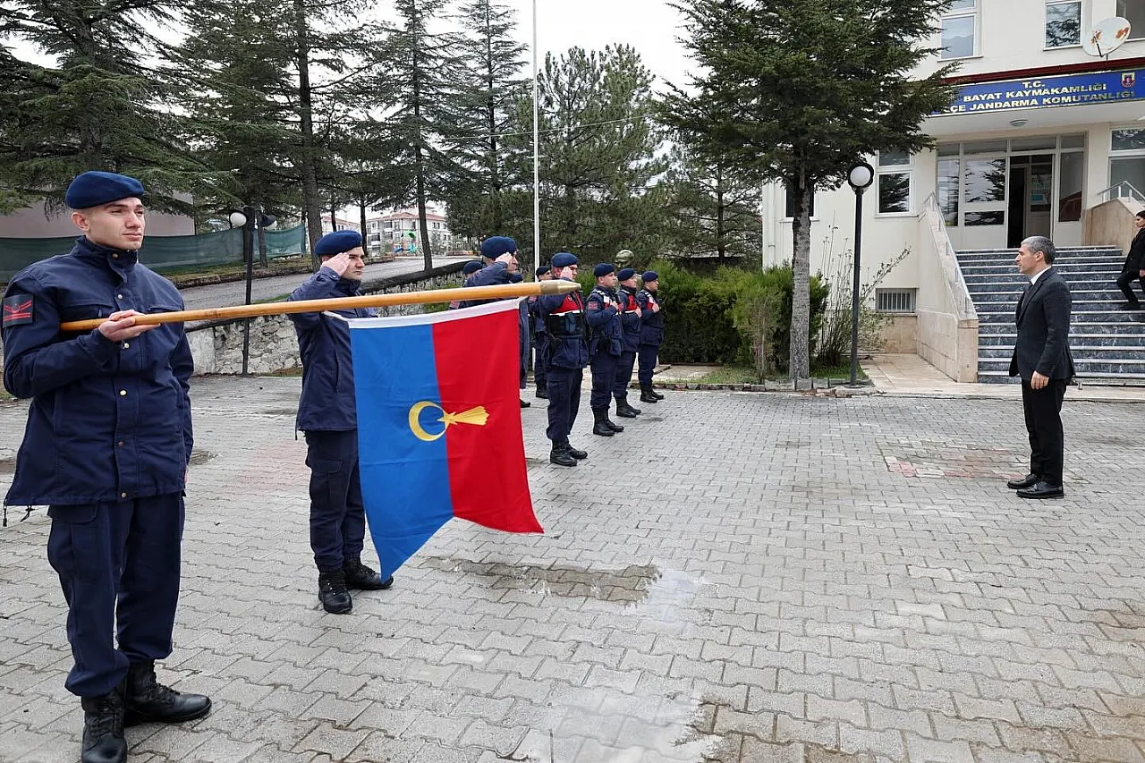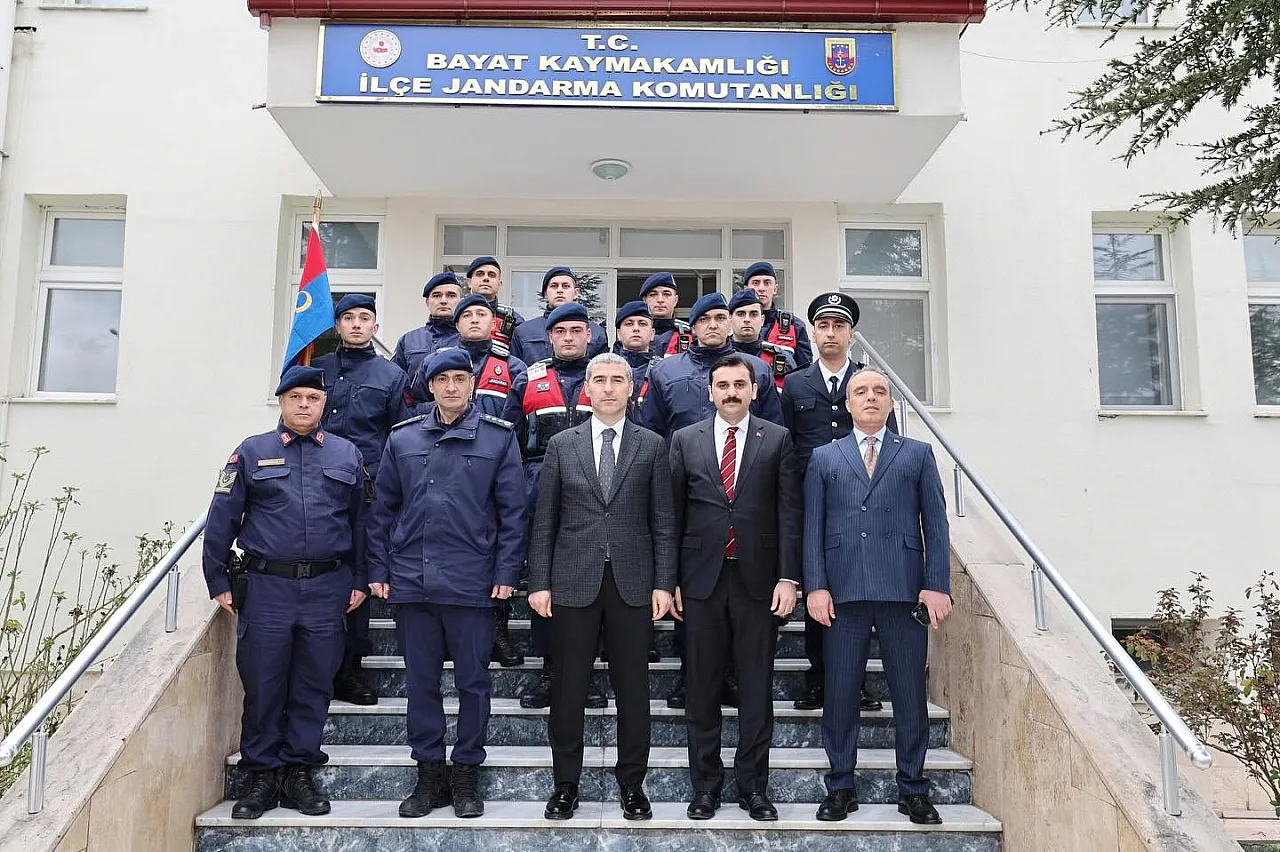Bayat İlçe Jandarma Komutanlığını ziyaret eden Vali Dr. Naci Aktaş, asayiş, huzur ve güven ortamının sağlanmasına yönelik yürütülen çalışmaları denetledi. Kolluk güçlerimize teşekkür eden Vali Aktaş, çalışmalarında kolaylıklar diledi.