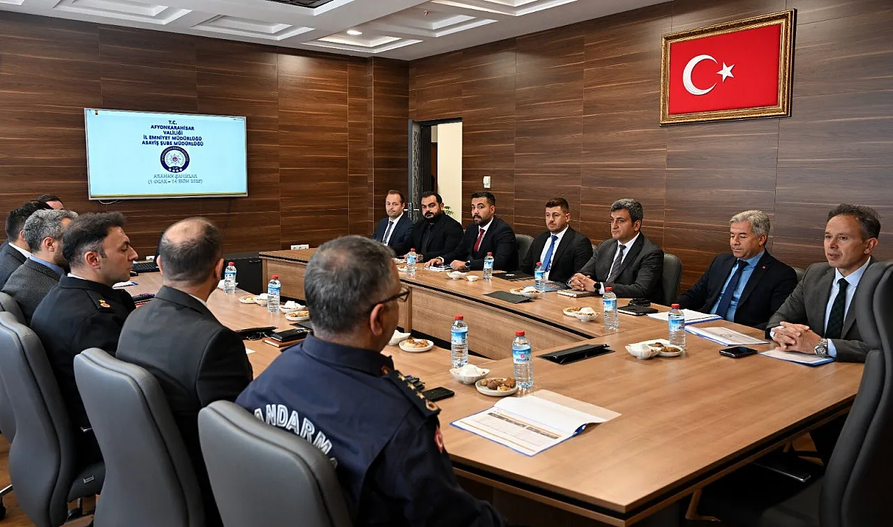 Afyonkarahisar Valisi Doç. Dr. Kübra Güran Yiğitbaşı'nın talimatıyla; Asayişten Sorumlu İl Emniyet Müdür Yardımcısı Erdal Yanık ve İl Jandarma Komutan Yardımcısı Albay Mustafa Ünsal başkanlığında, aranan şahısların yakalanmasına yönelik çalışmaların yapılmasını sağlamak ve bu çalışmaların takibini yapmak amacıyla oluşturulan çalışma grubu, İl Emniyet Müdürlüğü Toplantı Salonu'nda bir araya geldi.