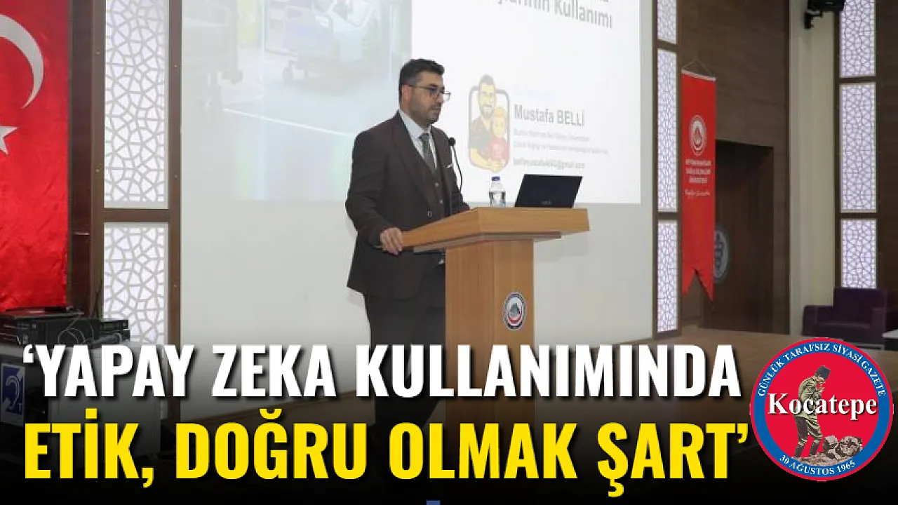 AFSÜ'de konuşan Burdur Mehmet Akif Ersoy Üniversitesi Sağlık Bilimleri Fakültesi Çocuk Sağlığı ve Hastalıkları Hemşireliği Ana Bilim Dalı Öğretim Üyesi Dr. Öğretim Üyesi Mustafa Belli, yapay zekâ kullanımında etik ilkeler, doğruluk kontrolü ve araştırma bütünlüğünün korunması gerektiğini söyledi.